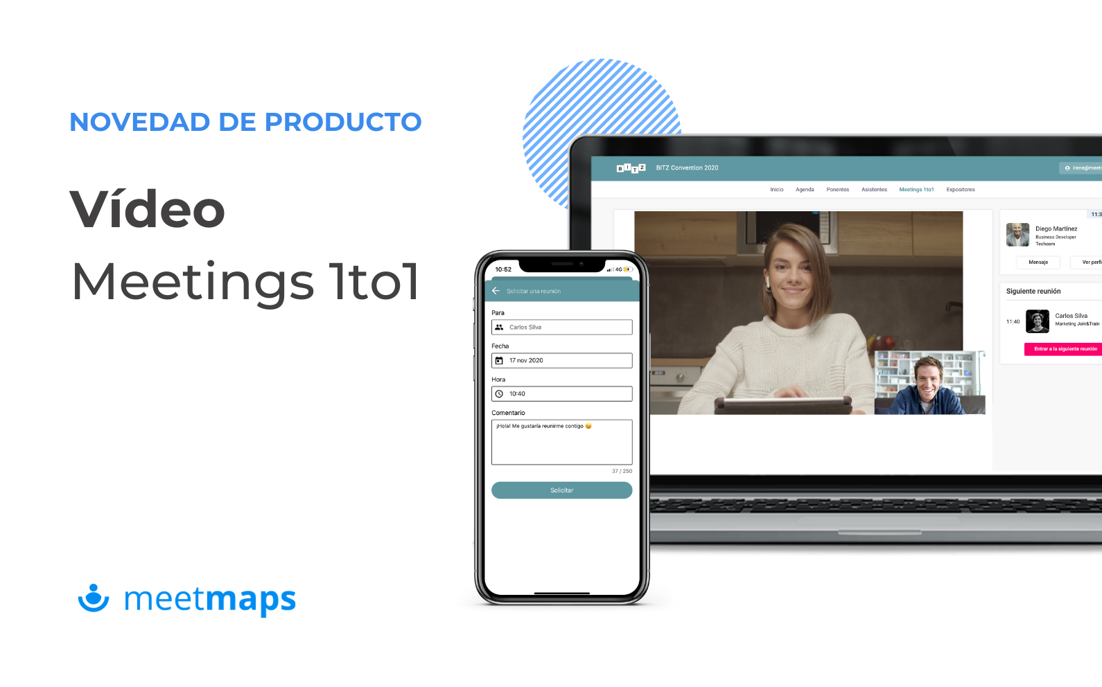 Meetmaps lanza los Meetings 1to1, una funcionalidad actualizada que permite establecer reuniones en formato app para eventos presenciales y en formato web para eventos virtuales o híbridos mediante videollamadas.